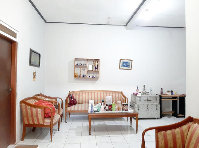 Ruang tengah sebagai tempat berkumpul terdapat meja kursi tamu, meja belajar, LED TV (new), wifi.