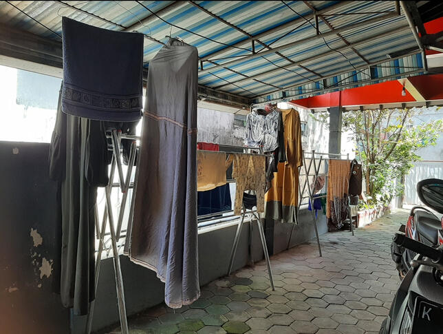 Disediakan tempat cuci baju beserta ember cuci, setrika + alas, jemuran di halaman parkir.